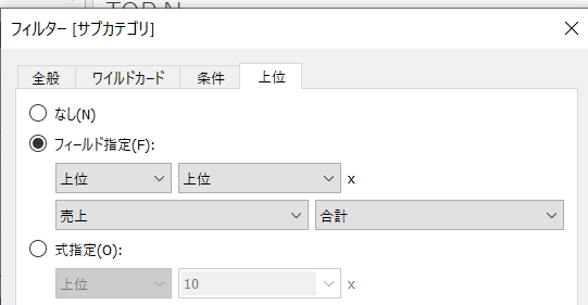 ダッシュボード上に用意された「上位」部分で数字をポチポチ押すことで、フィルタするTOP N 部分を変えられる。
