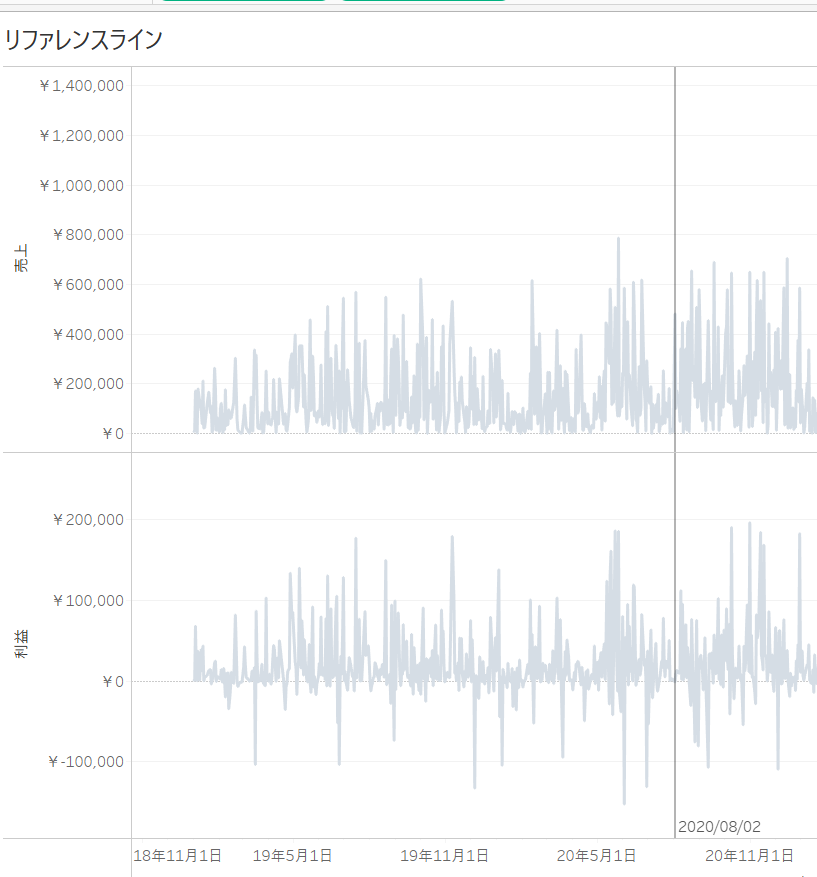グラフの先頭に「メジャー集計(ソート用)」という情報がある。これを使って並び替えている。 今回の場合、利益を軸に降順で並べているが、利益の値にマイナスをかけたものが「メジャー集計(ソート用)」に入っている。 降順なのだから正の値を掛けるだろうとぼんやり思っていたが値を入れるとわかりやすいのでメモとして記載する。